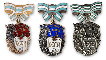 Это был последний орден СССР, который появился во время ВОВ. Его вручали женщинам, которые родили и воспитали более семи детей. За 7-го ребенка женщина получала орден “Материнская слава” третьей степени, 8-го – орден “Материнская слава” второй степени, 9-го – орден “Материнская слава” первой степени. При вручении учитывали не только родных, но и усыновленных детей. За все время, до 1983-го, было произведено почти 6 миллионов награждений.